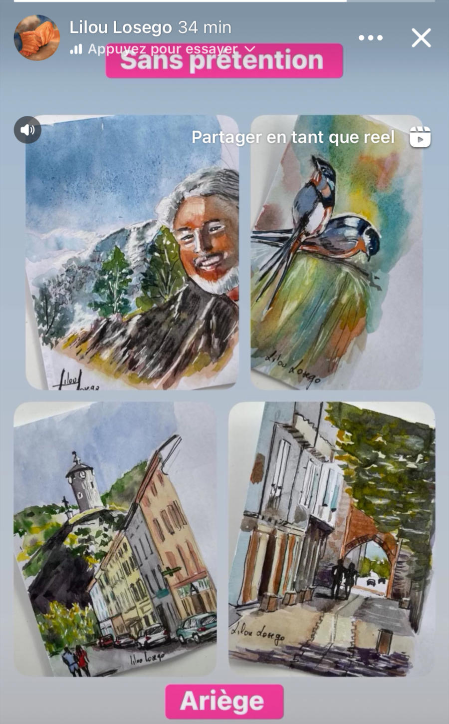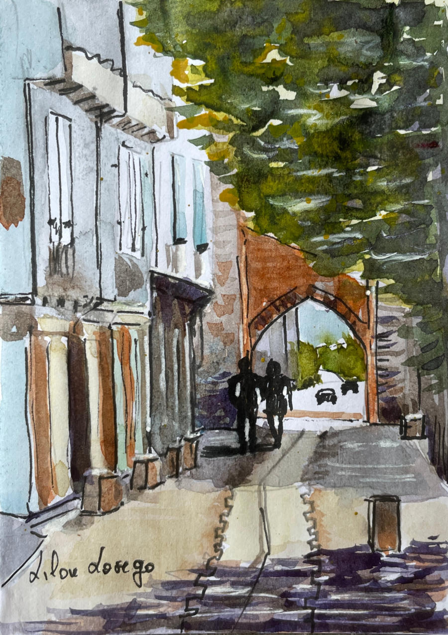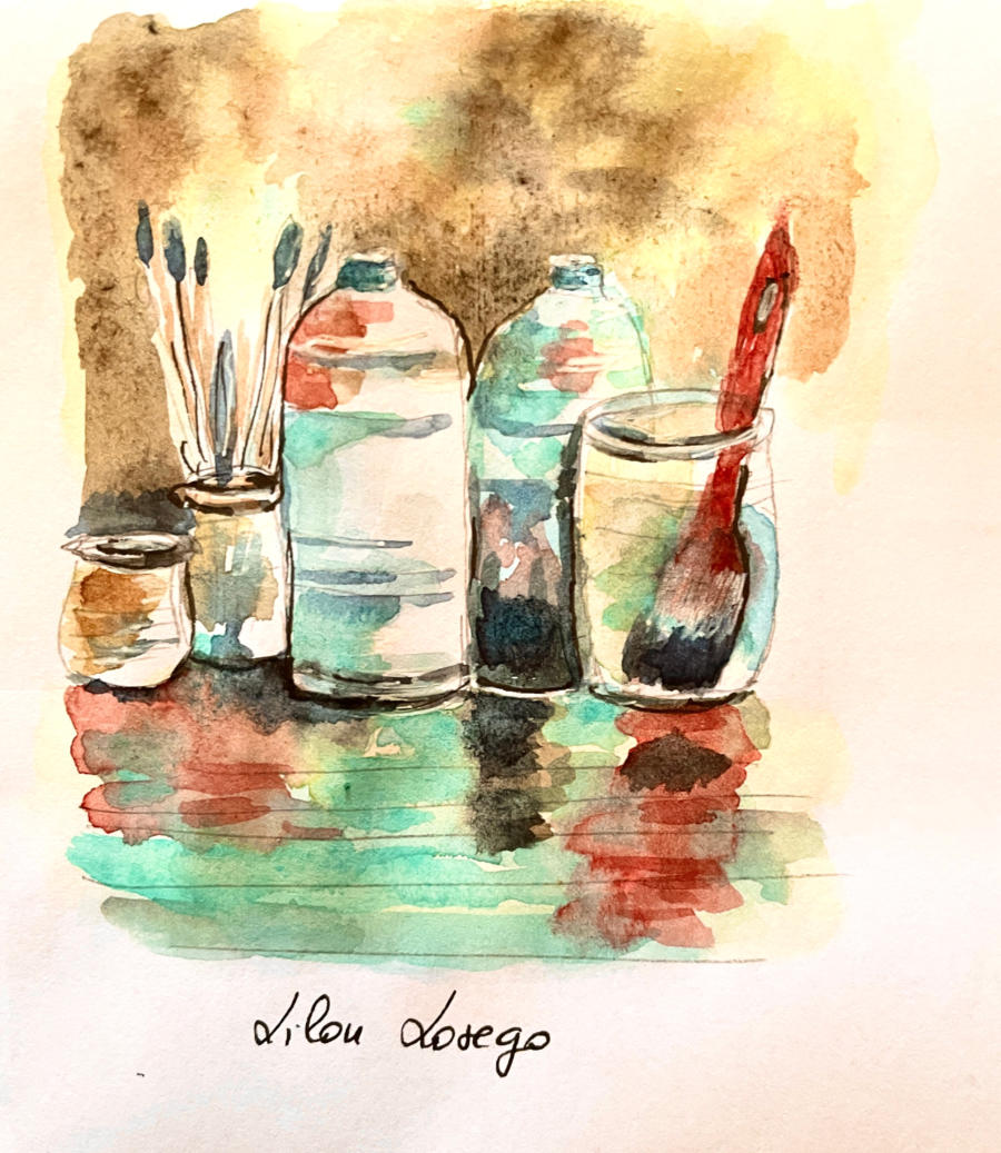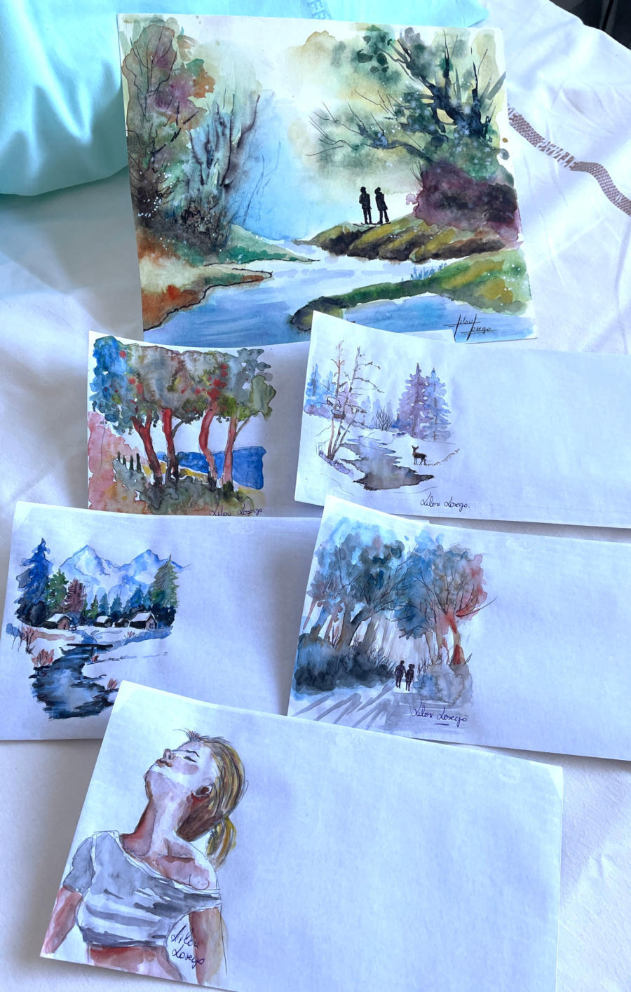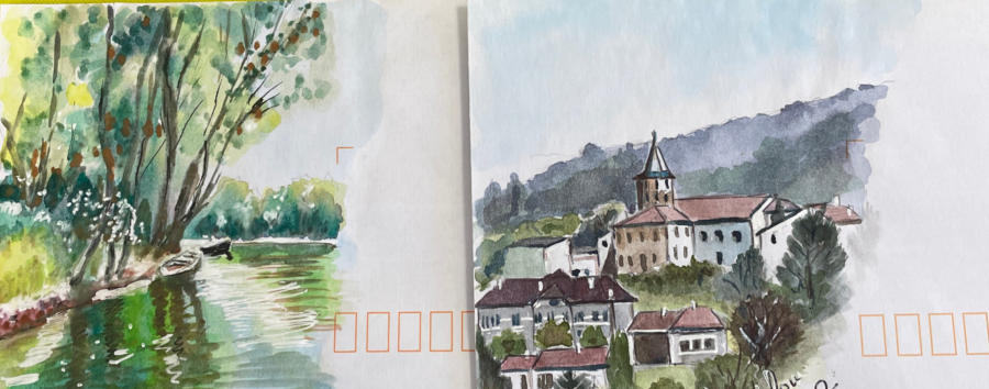 Pour tout courrier expédié une mini aquarelle est réalisée.