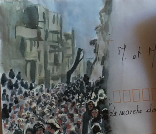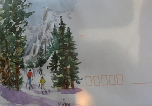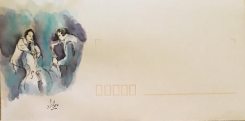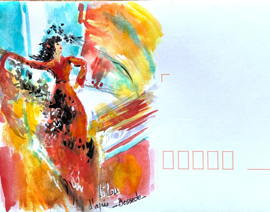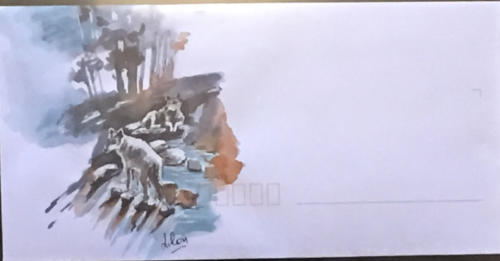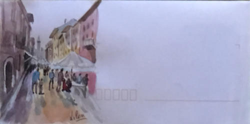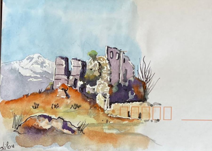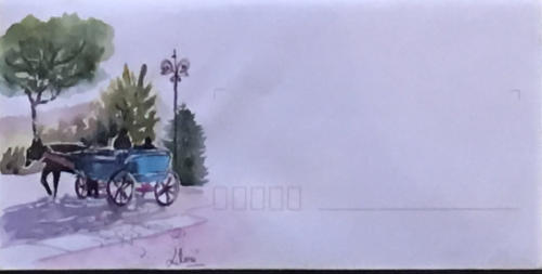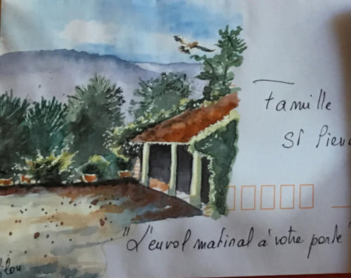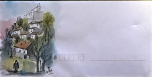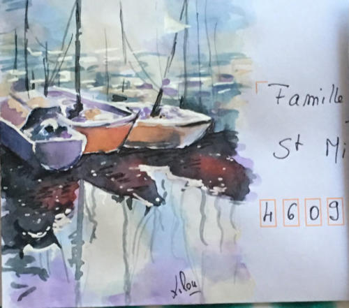 Pour tout courrier expédié une mini aquarelle est réalisée.