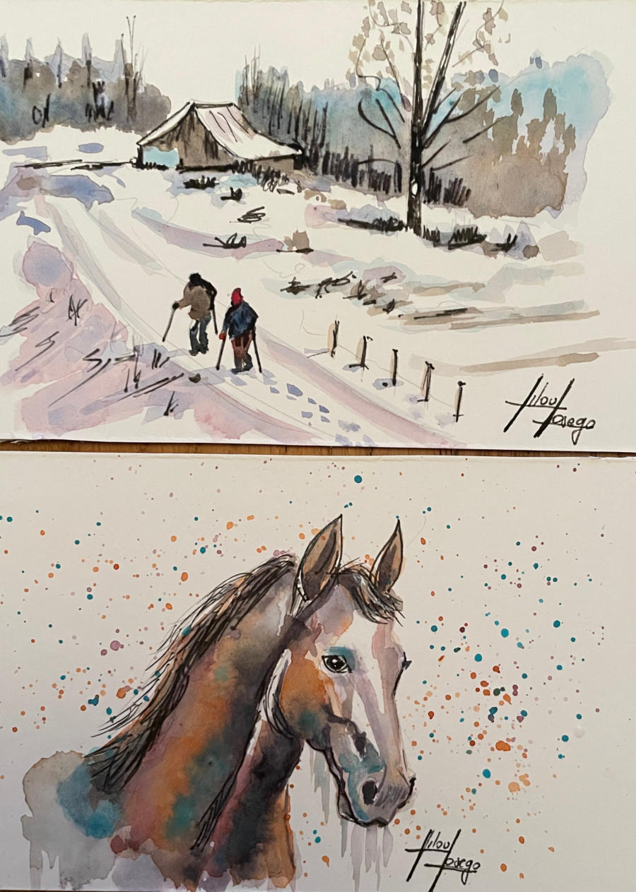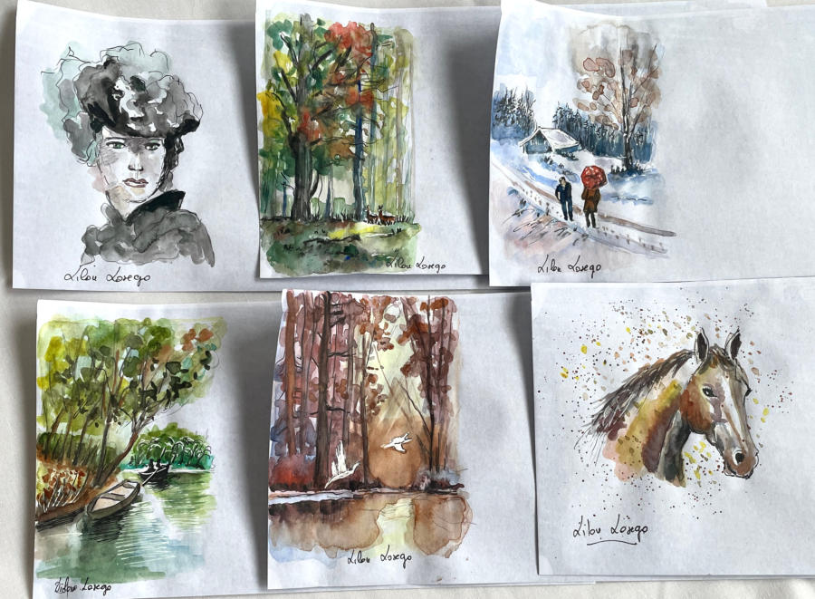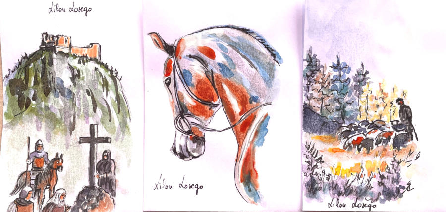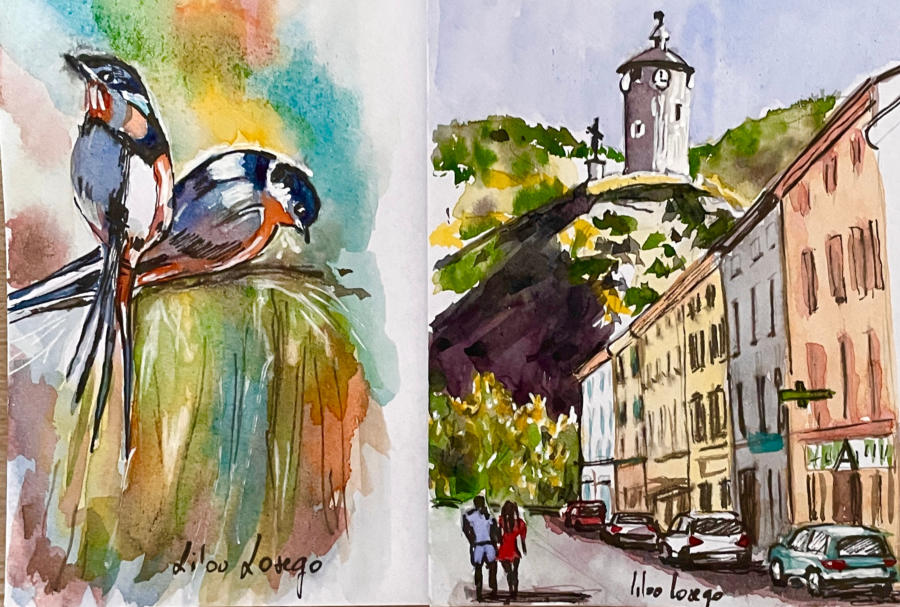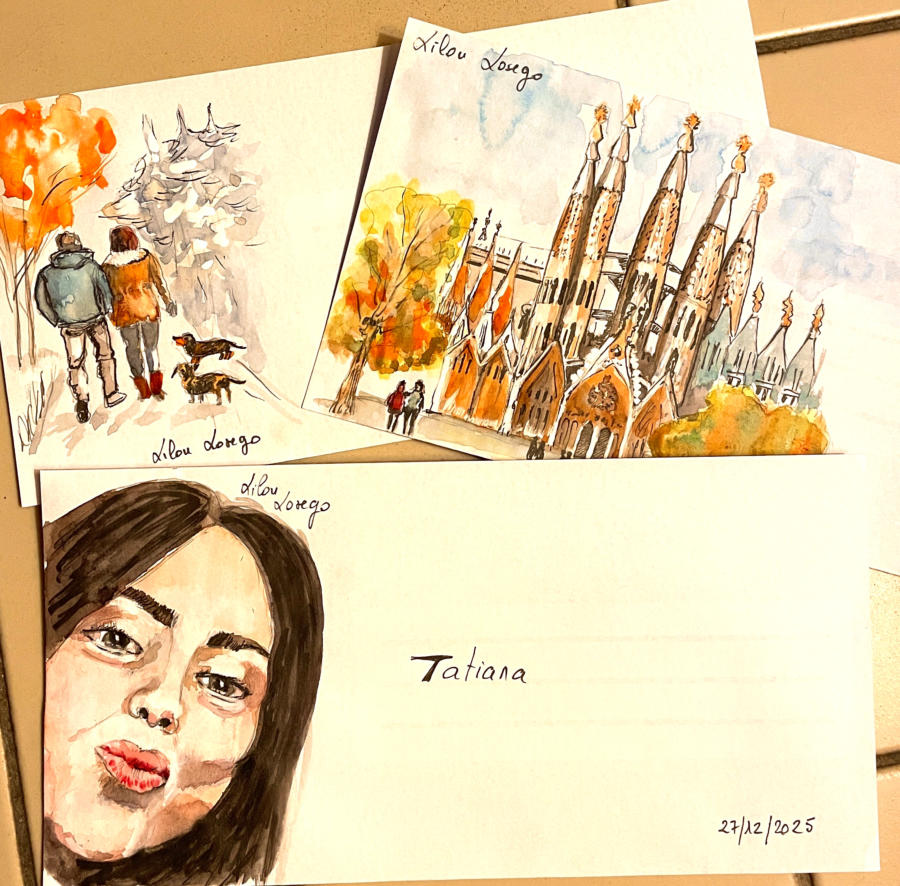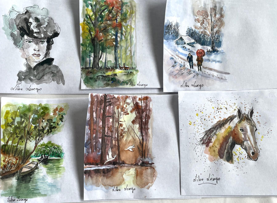 Pour tout courrier expédié une mini aquarelle est réalisée.