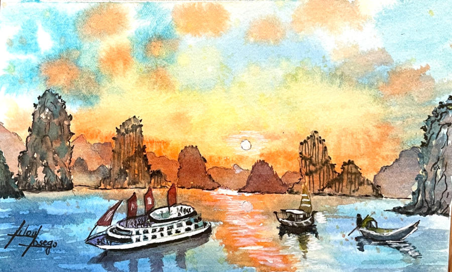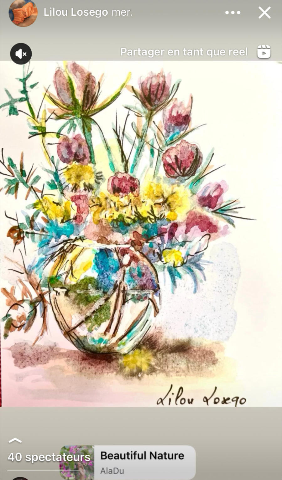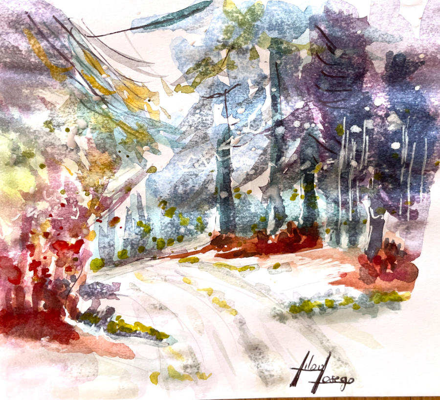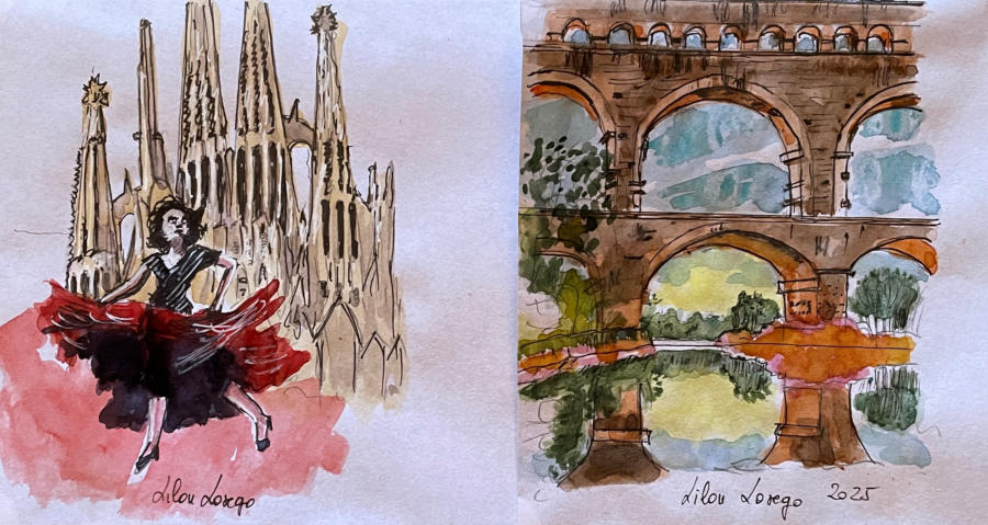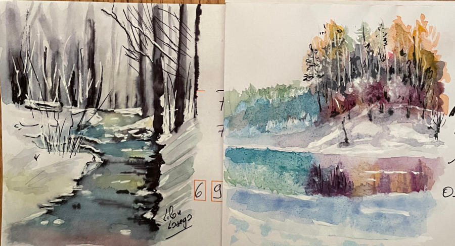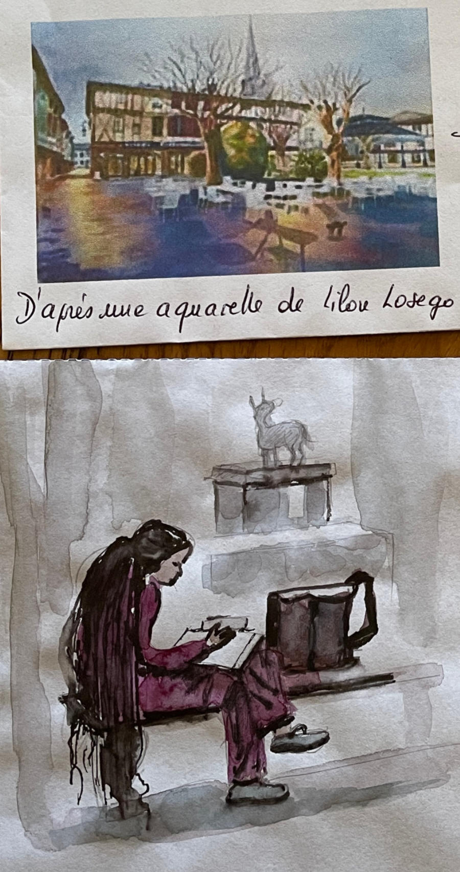 Pour tout courrier expédié une mini aquarelle est réalisée.