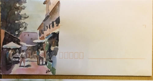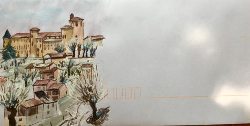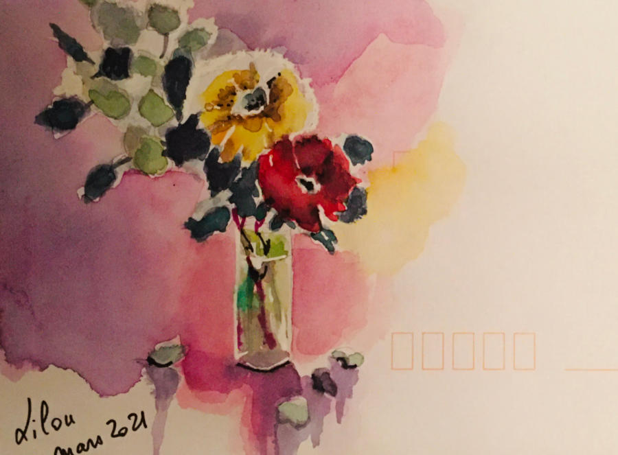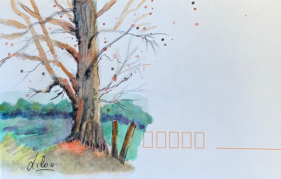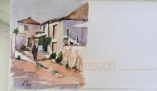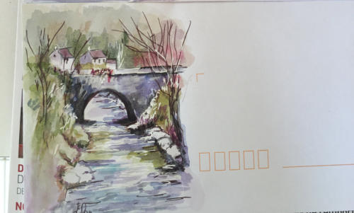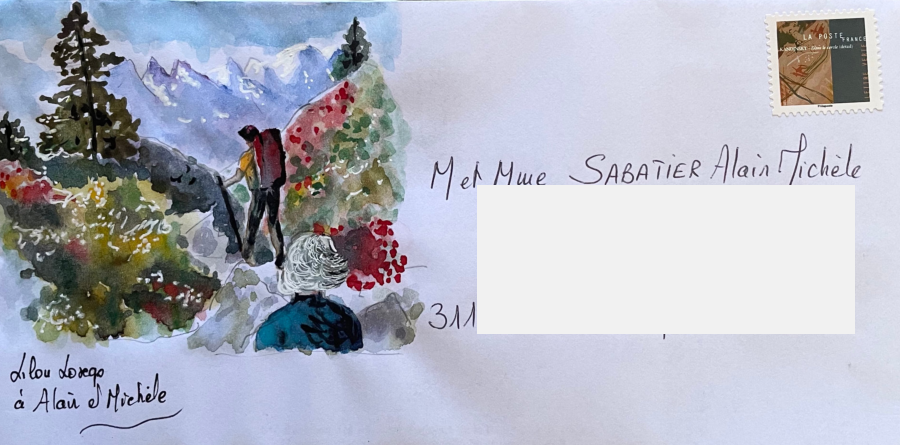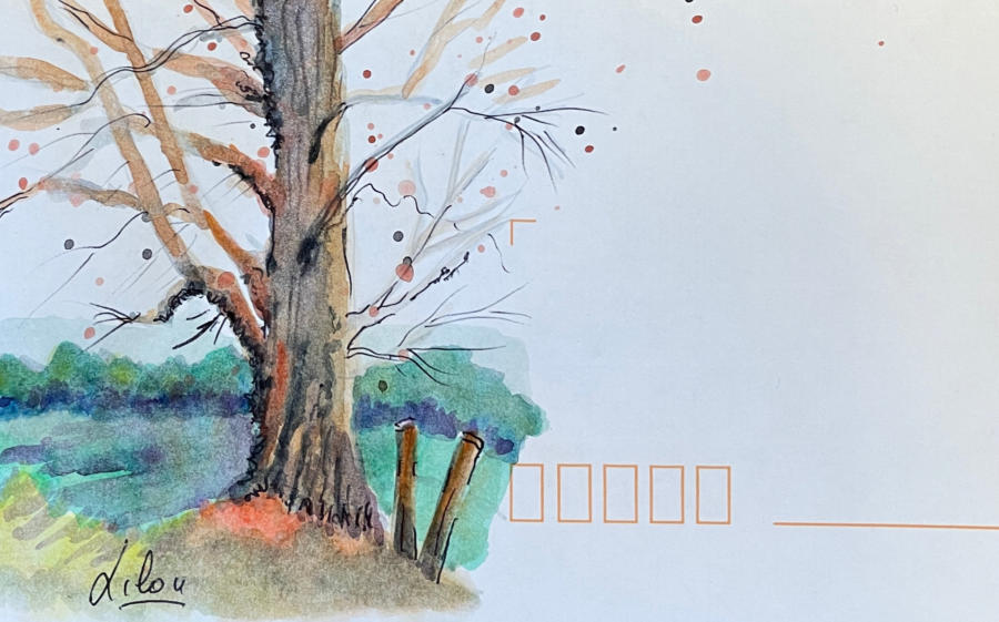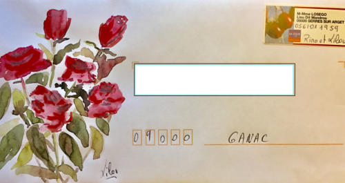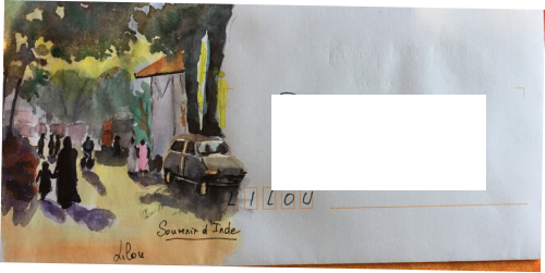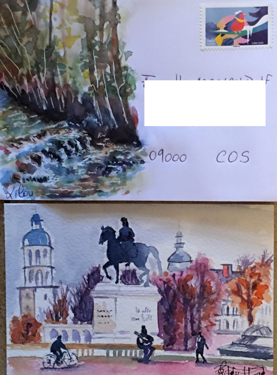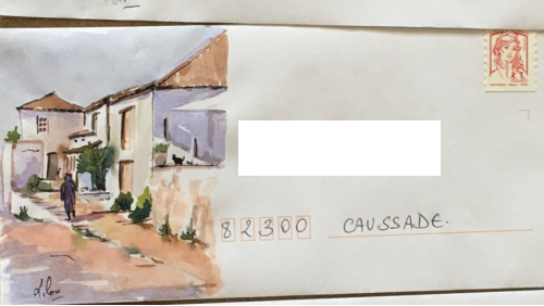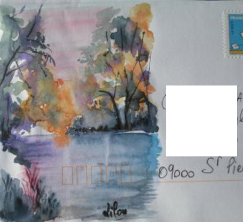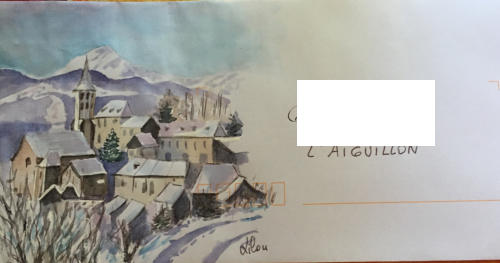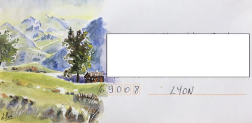 Pour tout courrier expédié une mini aquarelle est réalisée.