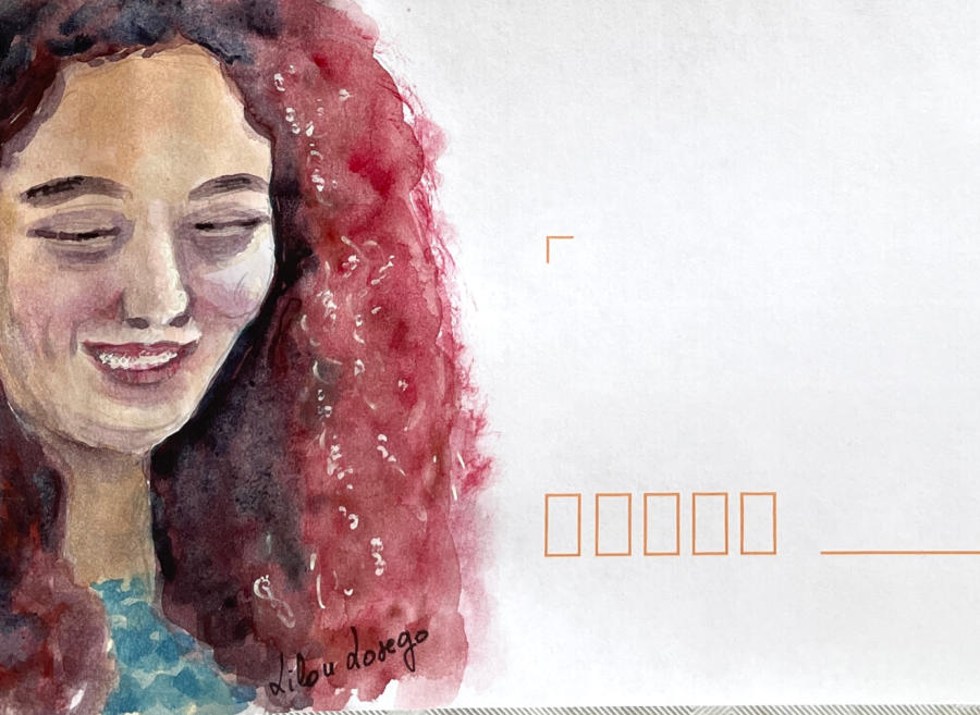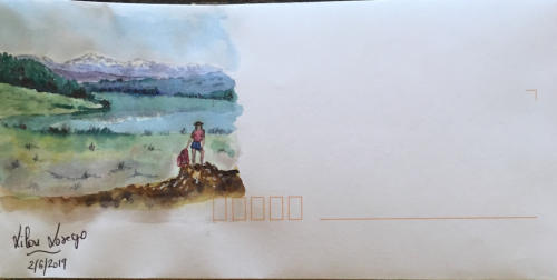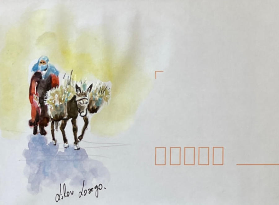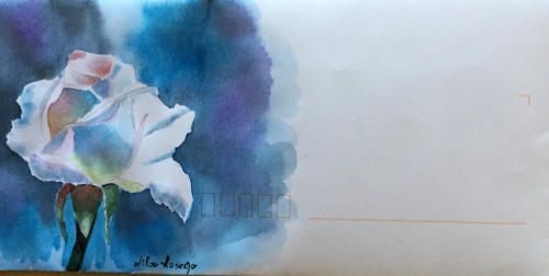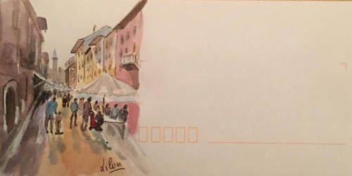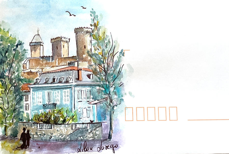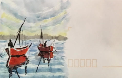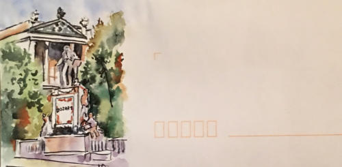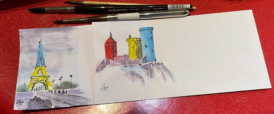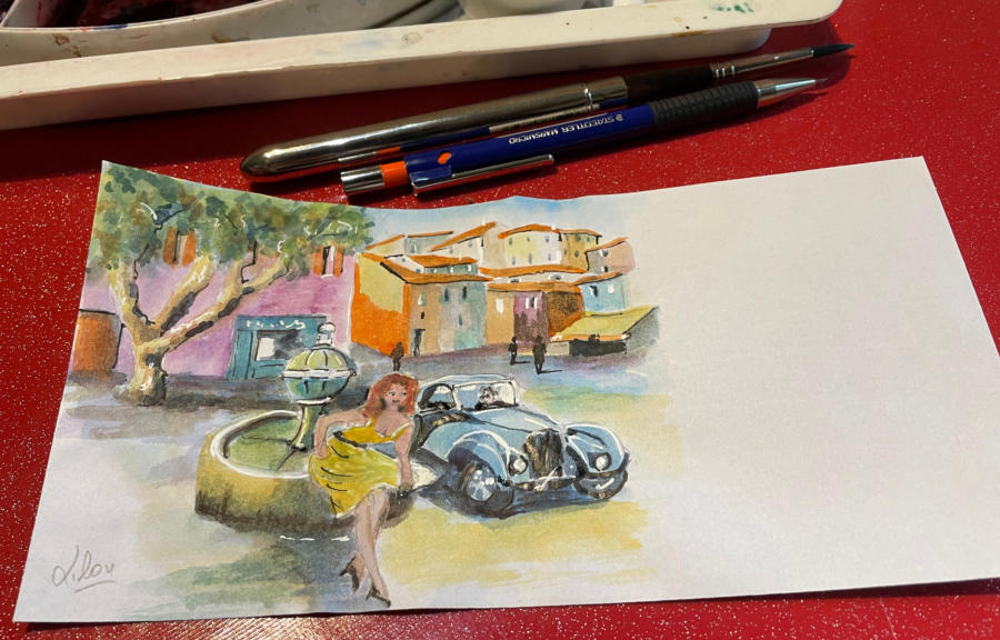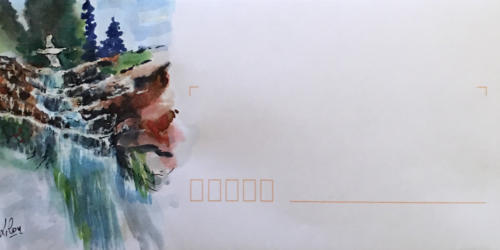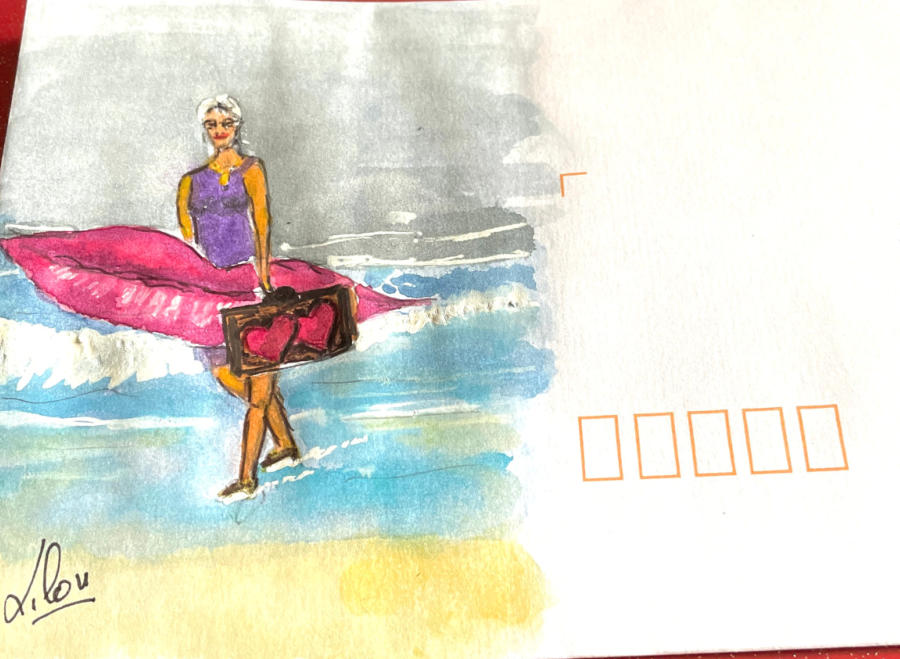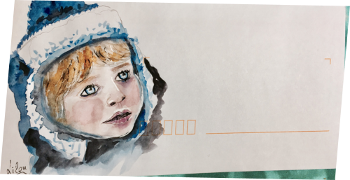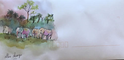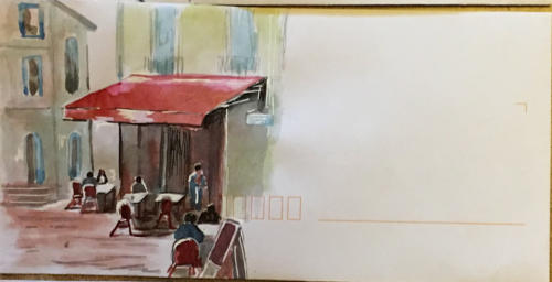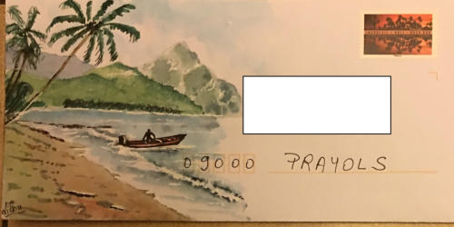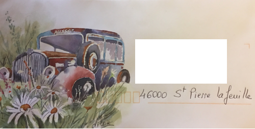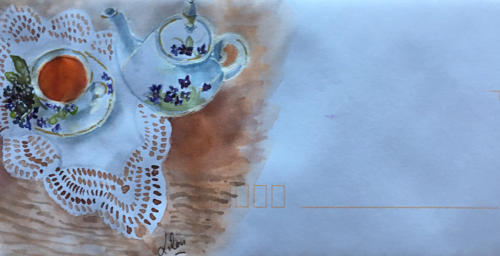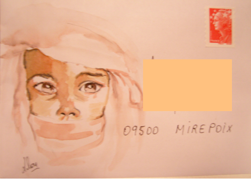 Pour tout courrier expédié une mini aquarelle est réalisée.