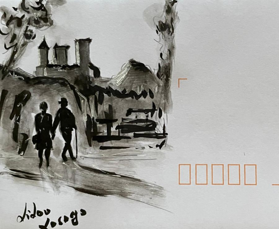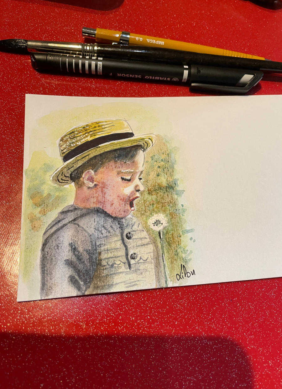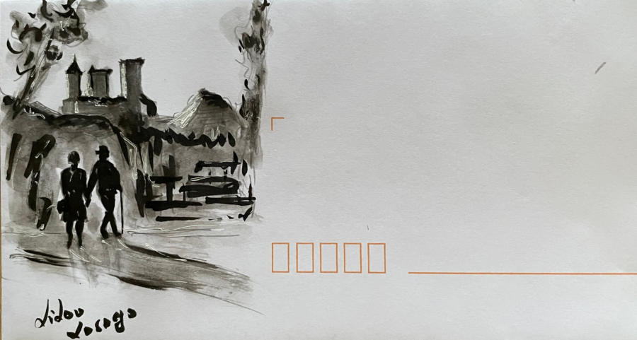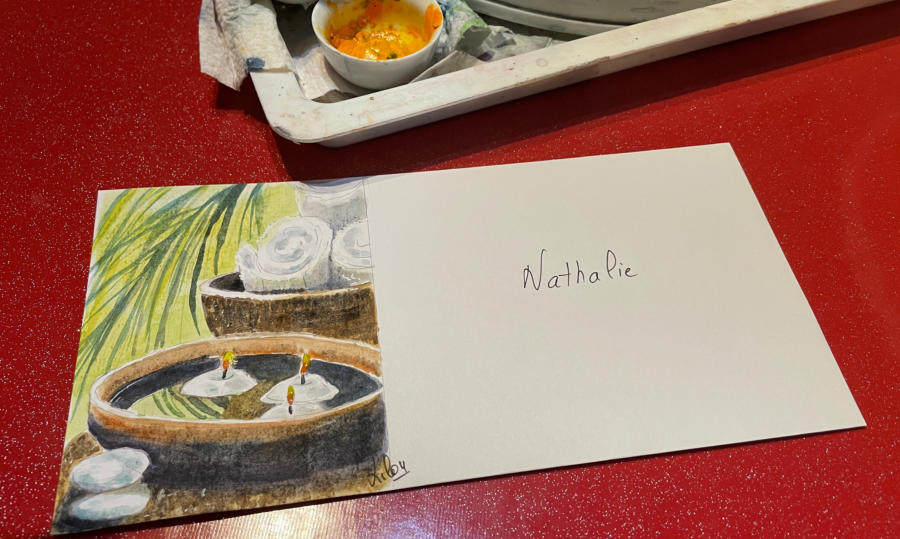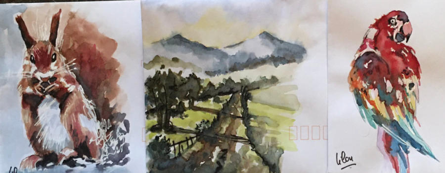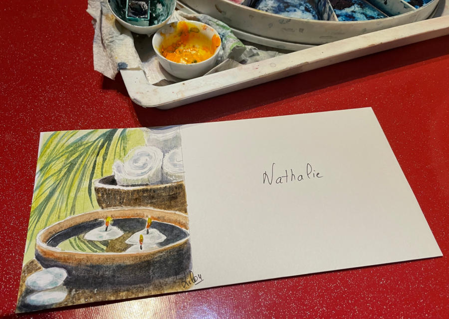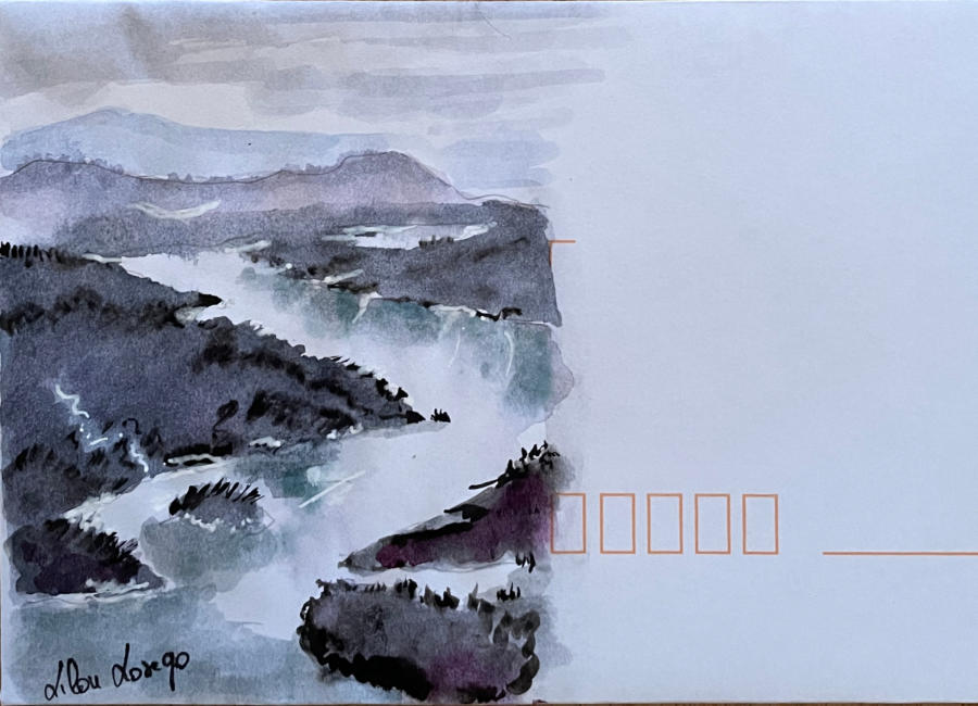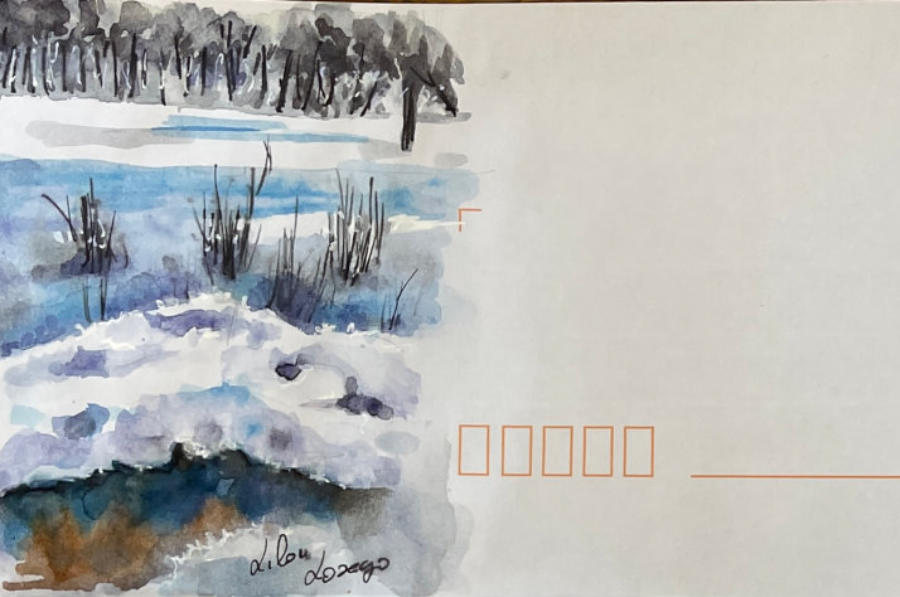 Pour tout courrier expédié une mini aquarelle est réalisée.