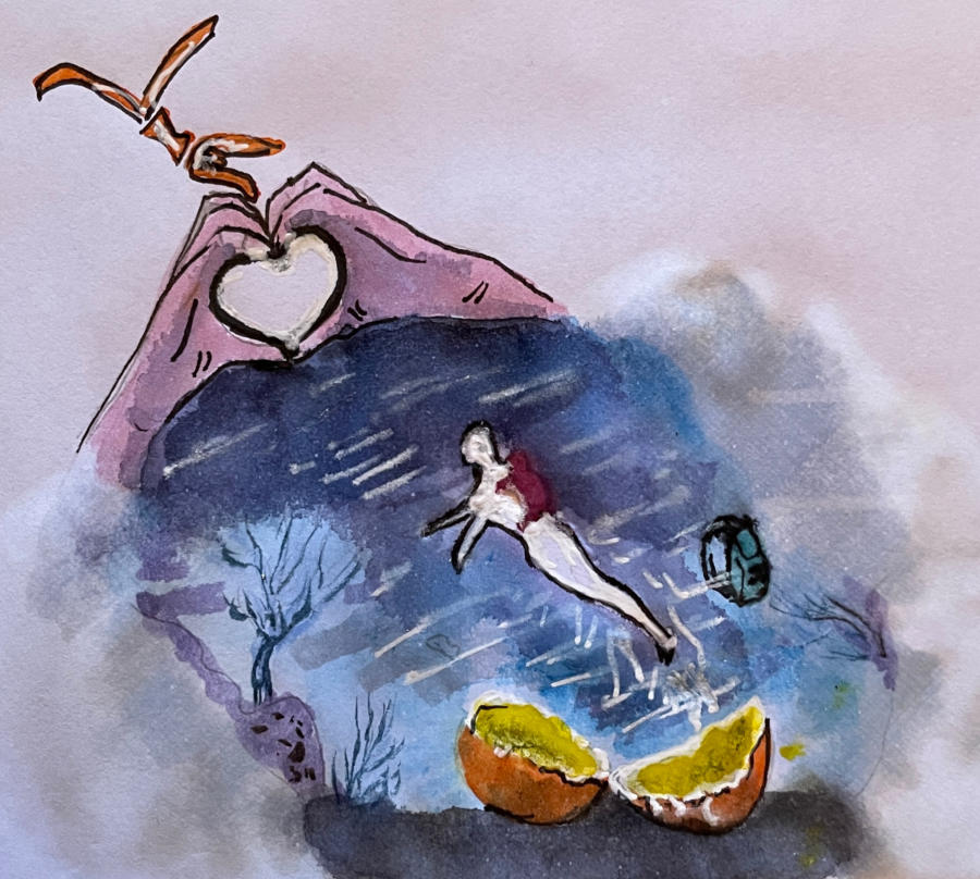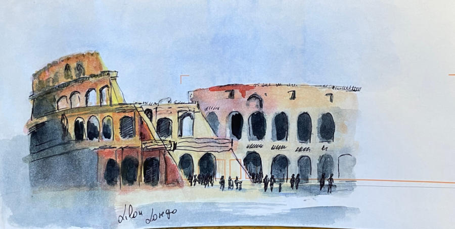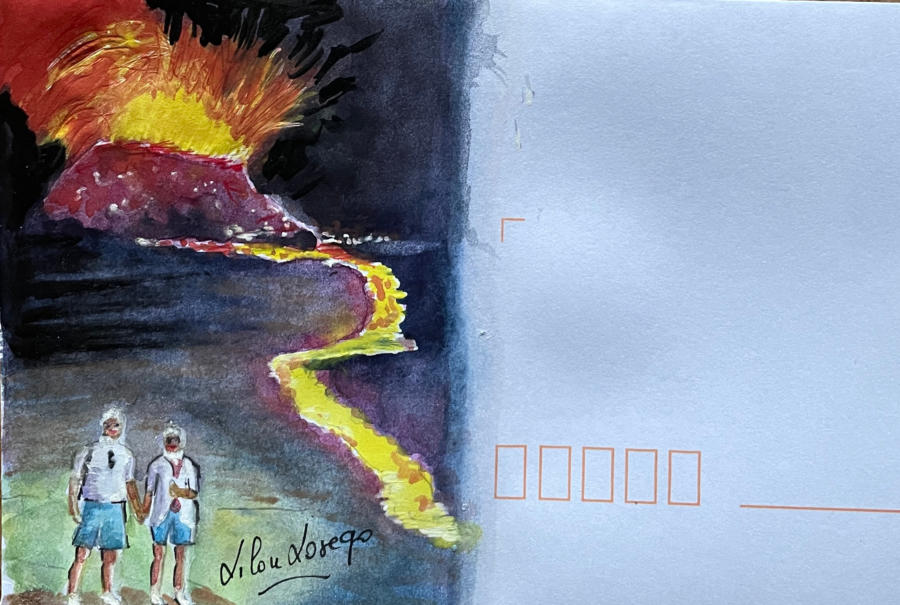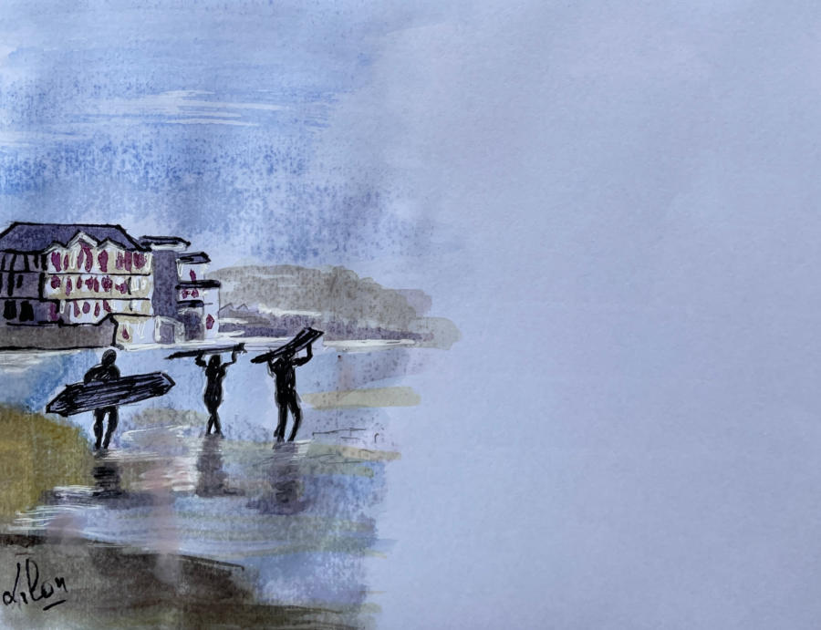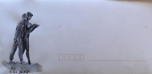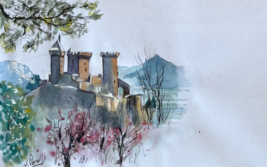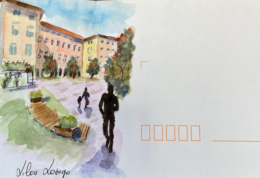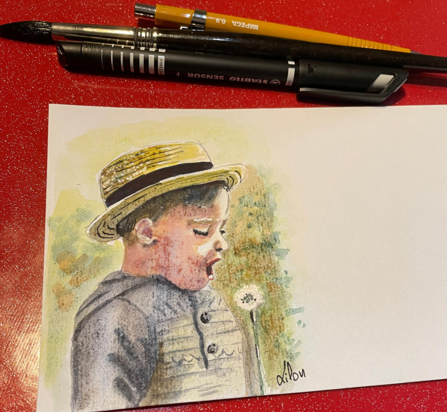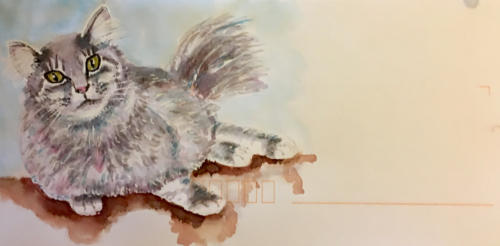 Pour tout courrier expédié une mini aquarelle est réalisée.